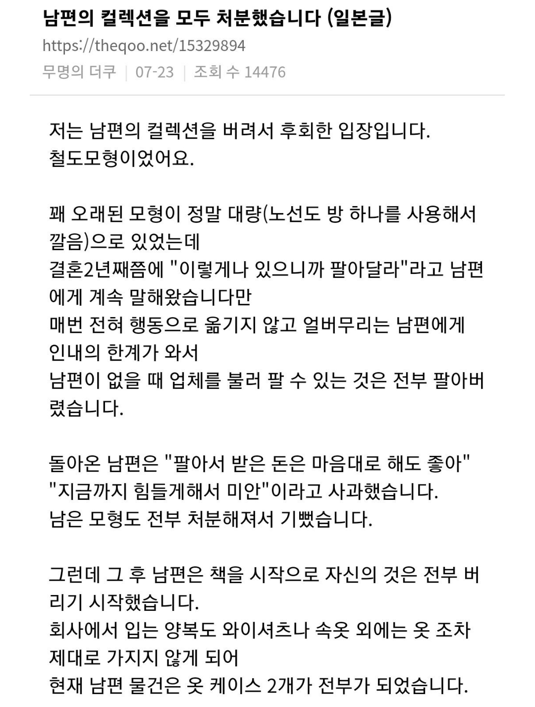 남편의 컬렉션을 모두 처분했습니다..