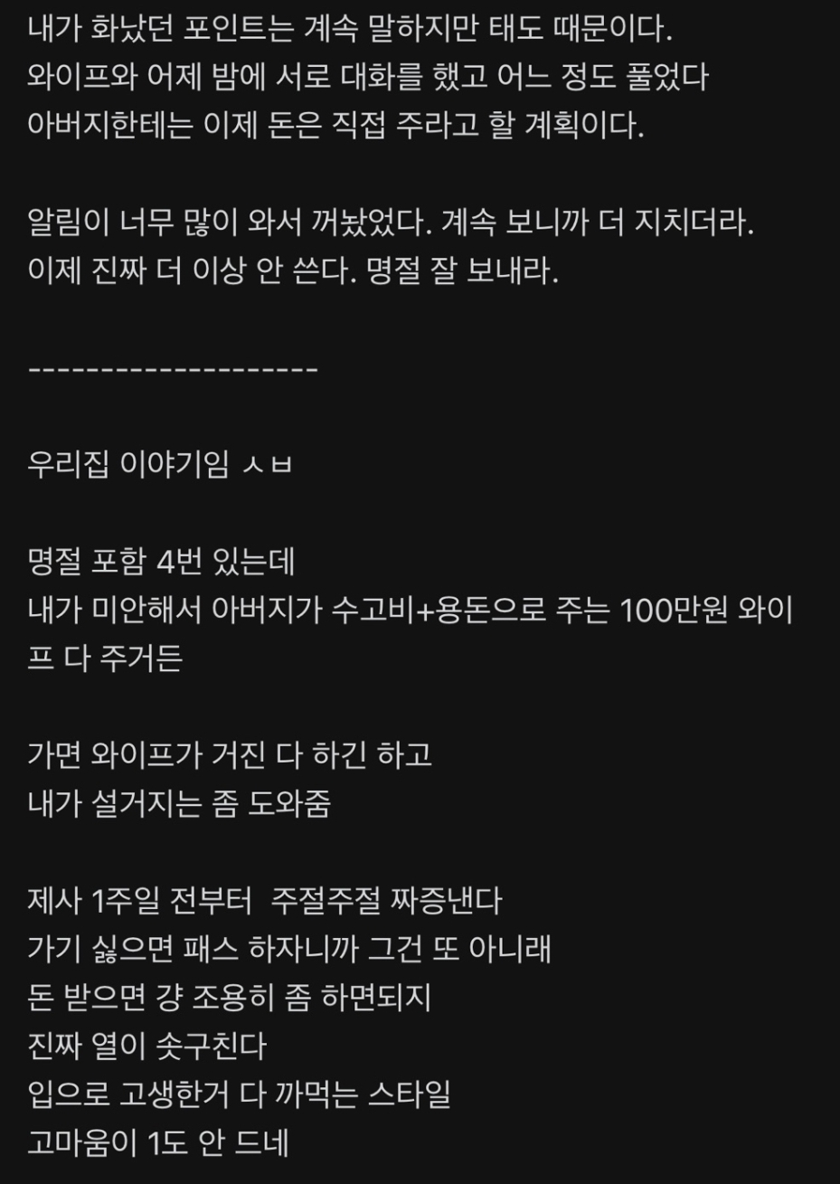며느ㄹl들 제사 할때마다 100만씩 주면 제사상 안차림?(+댓글반응)